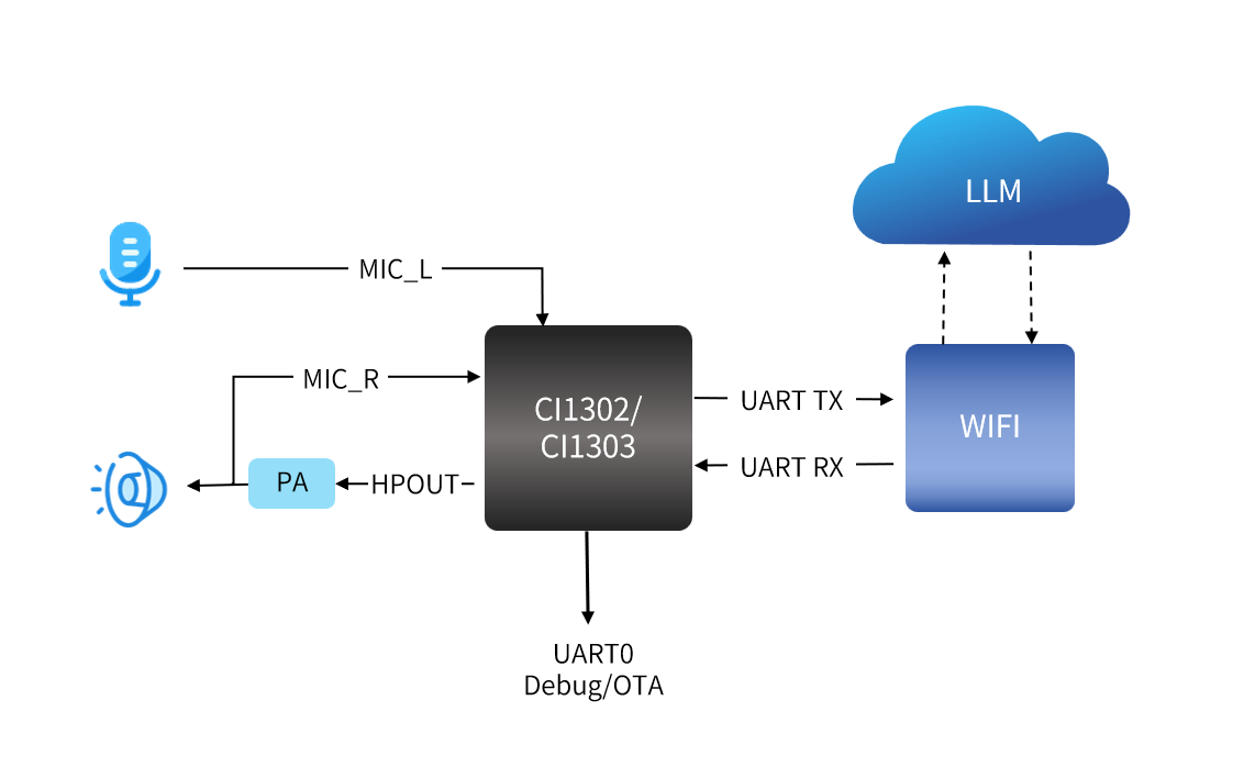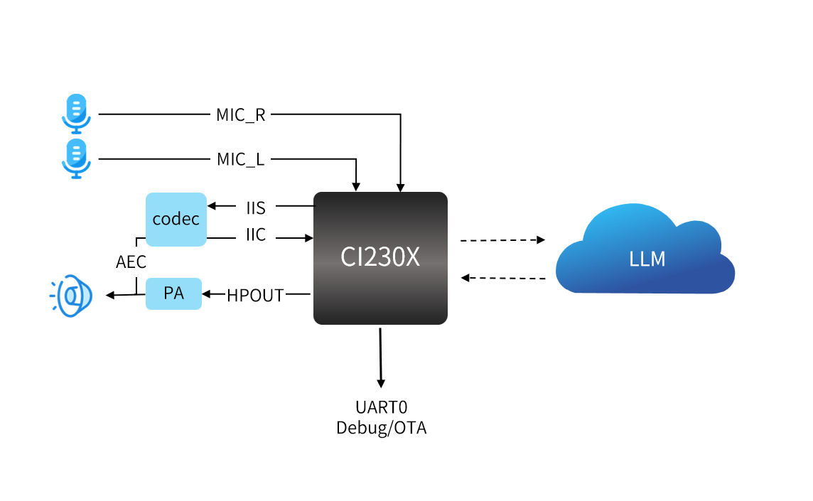 Combines local deep noise reduction and wake-word algorithms with cloud-based natural language understanding and dialogue generation, providing multi-turn, fluent, and full-duplex voice interaction. Supports major LLMs like Doubao, ERNIE Bot , and Deepseek.
